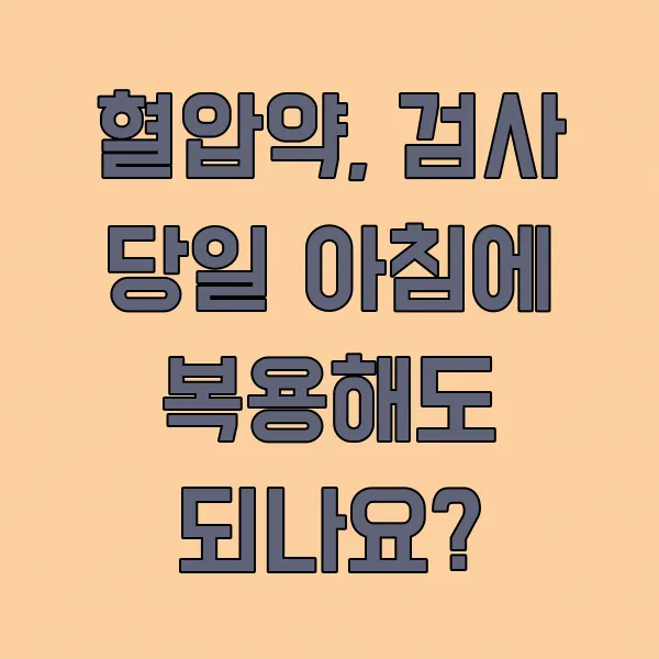 🚨 주의: 만약 조영제를 사용하는 검사를 함께 진행한다면 이야기가 달라져요. 조영제 검사는 수분 섭취가 제한될 수 있기 때문에, 이때는 혈압약을 복용하면 안 될 수도 있어요. 검사 전에 반드시 의료진에게 현재 복용 중인 약과 검사 종류를 알리고 복용 여부를 확인받아야 합니다.