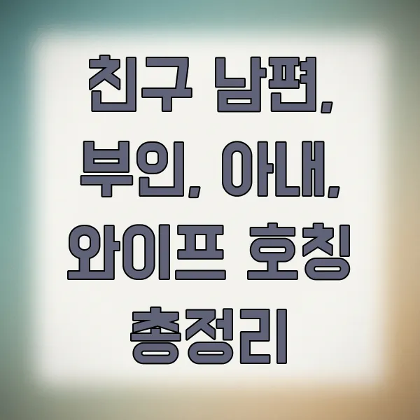 "내 친구 남편, 뭐라고 불러야 할까?", "내 와이프를 친구에게 어떻게 소개해야 할까?" 혹시 이런 고민, 한 번쯤 해보신 적 있으신가요? 😅 사회생활 하다 보면 은근히 헷갈리는 호칭 문제, 생각보다 많은 분들이 겪는 어려움이거든요. 오늘은 이 애매한 호칭들을 명확하게 정리해서, 앞으로 겪을 수 있는 어색한 상황을 미리 방지해 드릴게요.