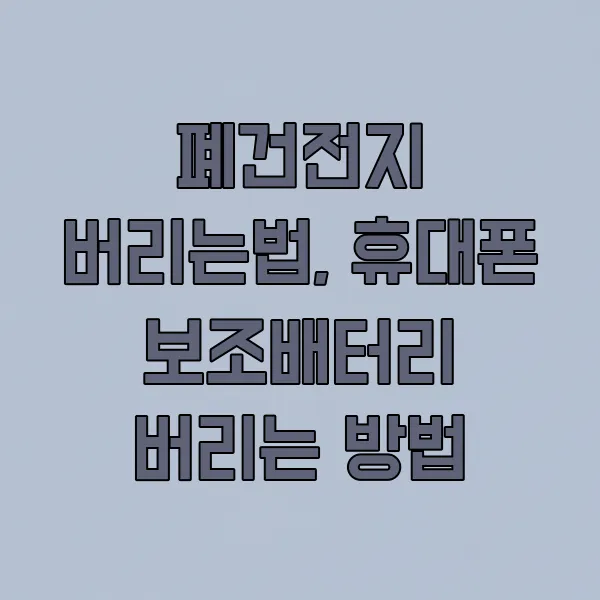 이용 안내: 본 콘텐츠는 일반적인 폐건전지 및 보조배터리 분리수거 방법에 대한 정보 제공을 목적으로 하며, 특정 지역이나 제품에 따라 배출 방법이 다를 수 있습니다. 정확한 배출 방법은 거주 지역의 지자체나 관련 기관의 안내를 확인하시기 바랍니다.