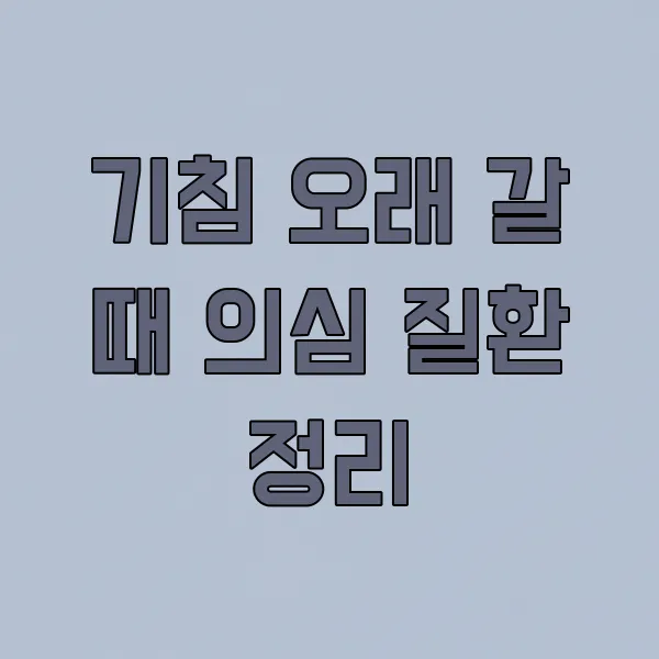 기침이 2주 이상 지속된다면 단순한 감기라고 생각하기보다 다른 질환을 의심해 볼 필요가 있습니다. 만성 기침은 다양한 원인으로 발생하며, 정확한 진단과 치료가 중요합니다. 여러 가능성을 염두에 두고 자신의 증상과 비교해보며 어떤 질환을 의심해 볼 수 있는지 알아보세요.