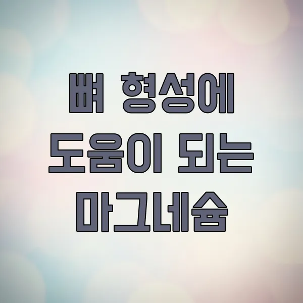 칼슘과 비타민D만큼 중요하지만 간과하기 쉬운 영양소가 바로 마그네슘 입니다. 마그네슘은 뼈의 구성 성분이면서 칼슘 대사에도 관여하여 뼈의 강도를 높이는 데 도움을 줍니다.